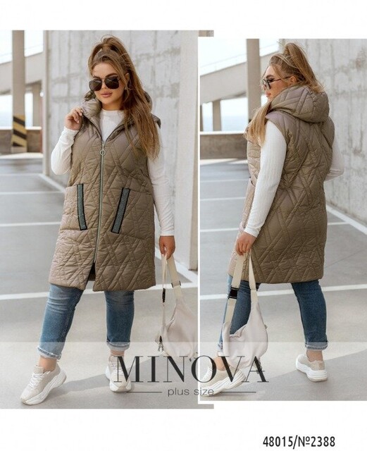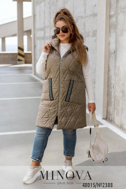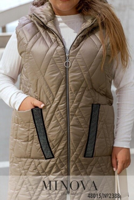 Зручний жилет для того, щоб створити дійсно яскраві образи. Ми вважаємо, що жилети - це неймовірно зручною одиницею в вашому гардеробі. Адже він може підходити під будь-який образ від суконь до спортивних костюмів. Модель подовжена по спинці. По передній частині розміщено дві накладні кишені, які декоровано стразами на замшевій основі. Модель має капюшон, який не відстібається. Цього сезону актуальними є теплі стьобані жилети вільного крою. Між жилетом та тілом має залишатися вільним простір.