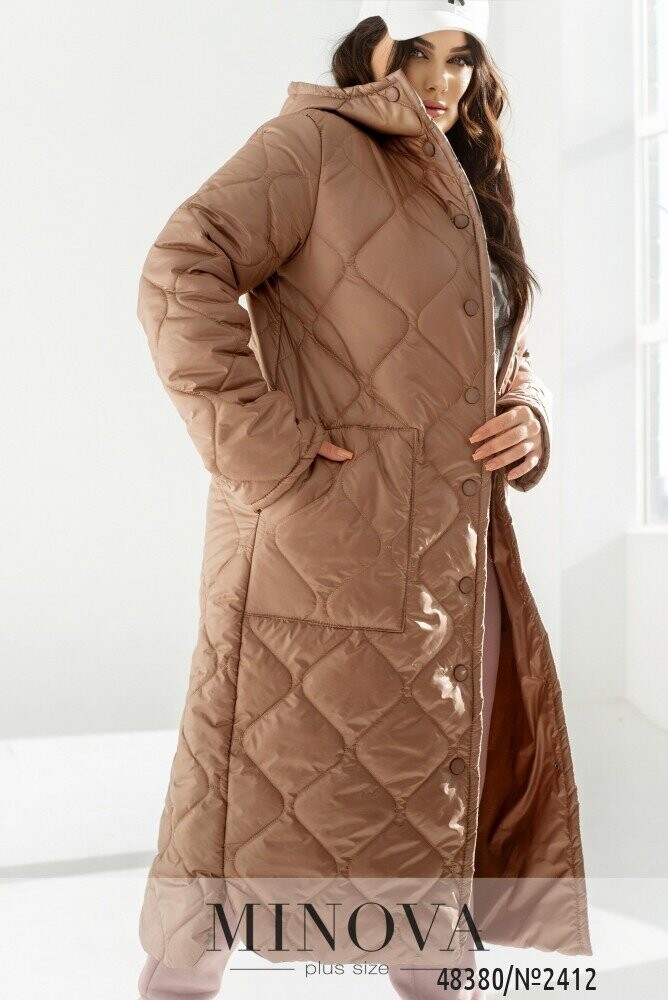 Довга стьобана куртка з пришивним капюшоном, високим коміром і довгими рукавами. Такий варіант курток майорить на стильних фешн показах вже другий рік та досі не втрачає своєї популярності. Куртка застібається на ряд кнопок спереду. Ми додали також накладні кишені на основній частині виробу. Така куртка легко поєднується з будь-якими елементами гардеробу, а також в ній буде однозначно тепло, адже ми додали наповнювач синтепон 200 та силікон.