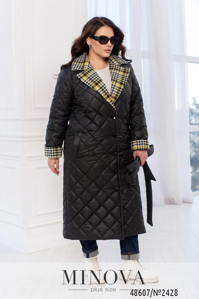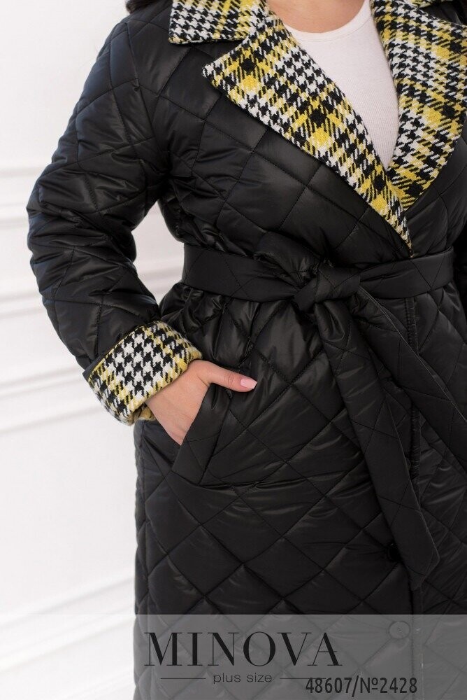 Стильна та сучасна комбінація, що сподобалася будь-якій модниці. Ми скомбінували стьобану плащівку, яка відноситься до більш класичного варіанту курток зі вставками з тканини твід шерсть, яка додає легкості виробу і робить виріб розслабленим. Вставки розміщені на рукавах та відкладеному комірі, а також по краю внутрішньої частини. Пальто застібається на ряд ґудзиків, а також його можна доповнити пальто поясом у тон плащової тканини, чим ви підкреслите лінію талії і зробити силует витонченим. Комбінуйте з гольфами з високою горловиною та джинсами фасону – slouchy, які ми вважаємо мастхевом для базового гардеробу.