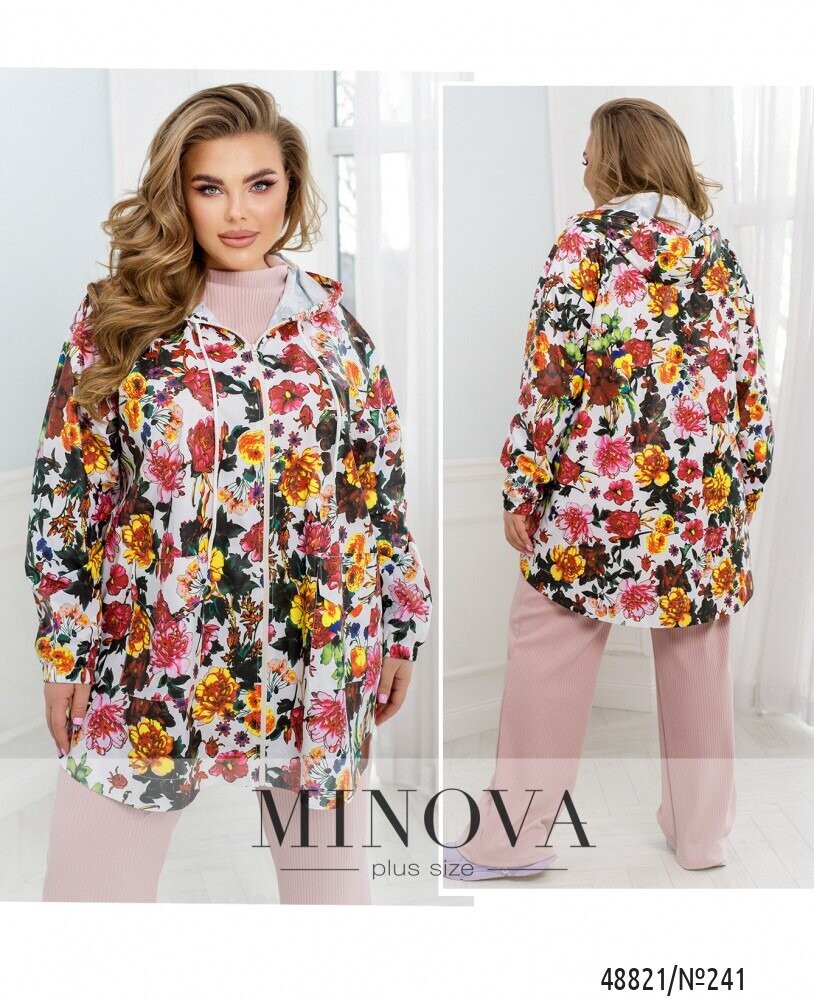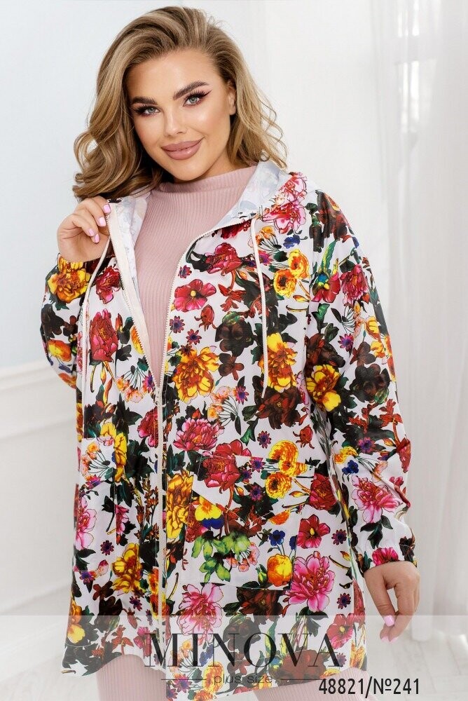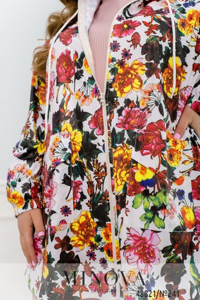 Плащівка Ловсан - це штучний матеріал, який виготовляється з синтетичних волокон з додаванням бавовни. Цей матеріал має високу стійкість до вологи, відмінну міцність і довговічність. Ця яскрава ветровка у квітковий принт — ідеальний вибір для тих, хто шукає яскравий та стильний захист від вітру. Вітровка застібається на блискавку, що забезпечує швидке та зручне вдягання, а капюшон із люверсами та шнурком захищає від дощу та вітру. Подовжений низ спинки додає додатковий захист і створює ефектний силует. Також ця вітровка має функціональні кишені на талії, які дозволяють зберігати необхідні дрібниці при необхідності, що робить її ще більш зручною та практичною у використанні. Крім того, квітковий принт надає вітровці неповторного шарму і робить її незамінною річчю в весняно-літньому гардеробі.
