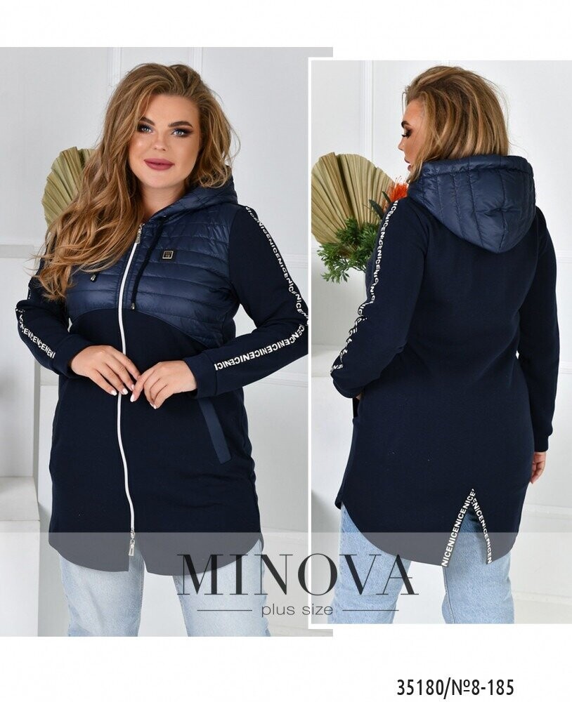 Зручна повсякденна куртка з підкладкою на місці прошитих частин. Капюшон зсередини м'який, ззовні гладенький. Ззаду на подолі шліца з декоративною стрічкою. Застібається на блискавку спереду по центру. Капюшон з пропущеним шнурком. Збоку на рукавах декоративні лампаси. З боків - кишені в шві.